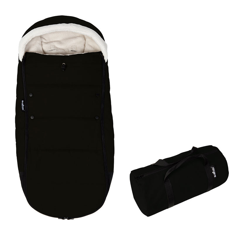 - Ensure a warm, cozy stroller ride for your little one with a channel-quilted footmuff featuring a plush fleece lining and hood. Simply snap off the winter layer when you find yourself inside for instant temperature control.