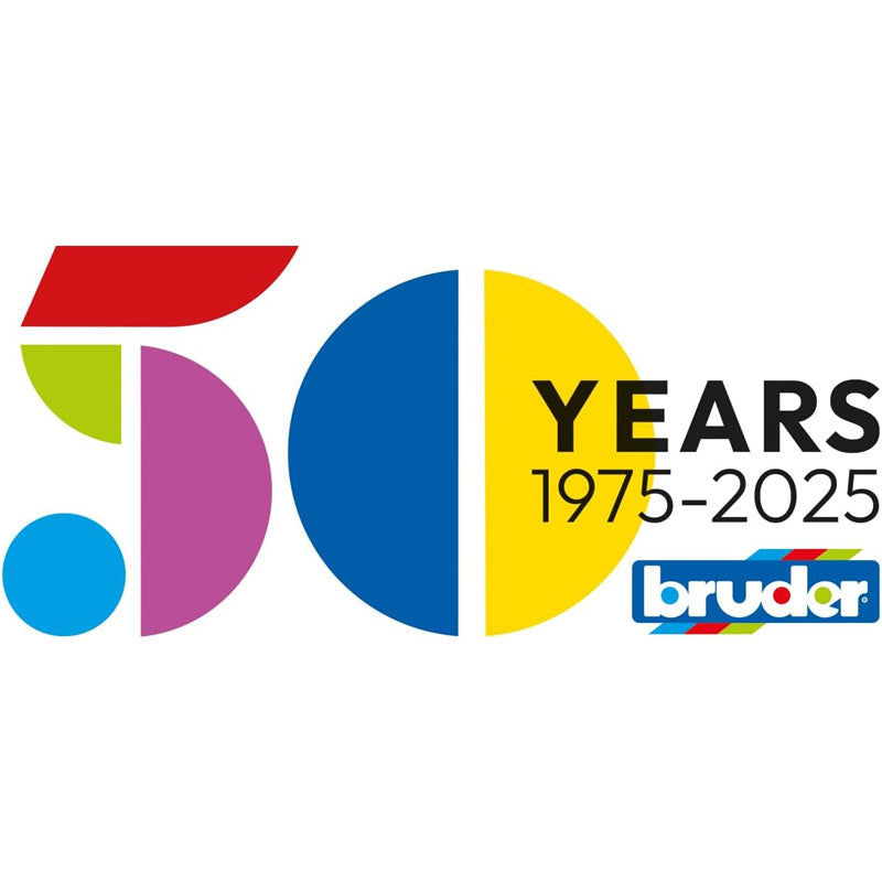 The Man TGA Cement Mixer Truck brings construction play to life with realistic features and sturdy design. Its tilting driver’s cab reveals a detailed engine block, while fold-out mirrors add authenticity. The rotating drum with an integrated mixing spiral is operated by a hand crank, and the fold-out cement chute makes unloading easy and fun. A fillable water tank and included bucket enhance the role-play experience, while treaded tires provide stability on any surface. This model showcases Bruder’s exclusive Anniversary colorway with a yellow drum, blue accents, and bold red wheels, making it truly one of a kind. For added excitement, the truck can be paired with the Light and Sound Module (Item No. 02803), sold separately.