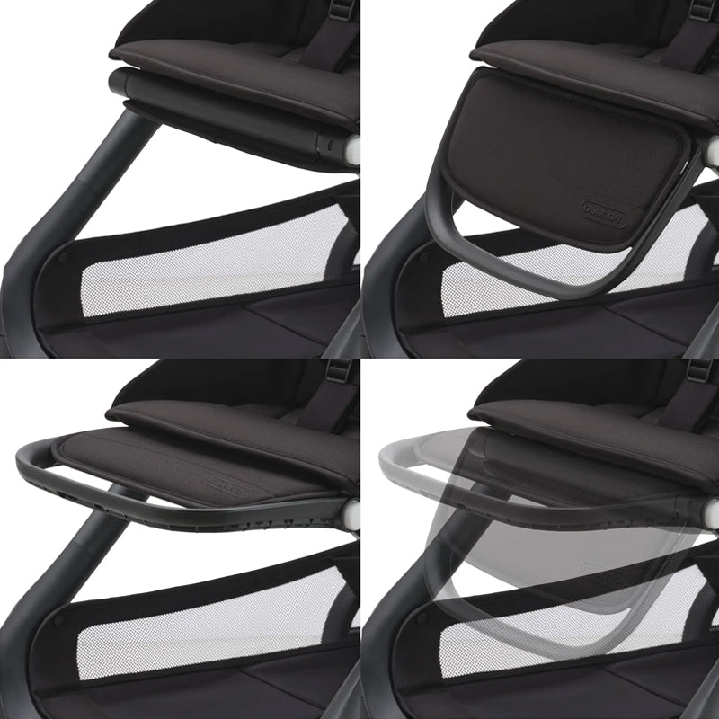 Extendable UPF 50+ sun canopy has a pop-out visor and peek-a-boo panel