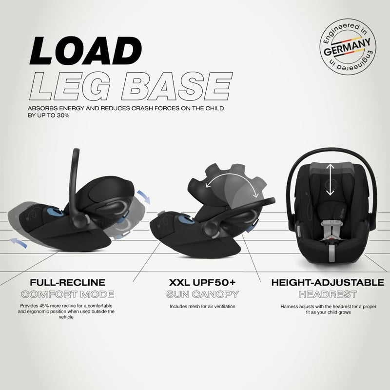 From the first trip home to countless journeys, the CYBEX Cloud G Lux Comfort Extend infant car seat makes traveling confidently with your little one a top priority. Advanced safety features including Load Leg, Linear Side Impact Protection, and Anti-Rebound Base combine with thoughtful comfort and convenience features designed to make life on the go easier. An easy-in buckle ensures hassle free loading and unloading your child into the seat. Attach in full recline mode to your preferred CYBEX stroller, transforming it into the ultimate travel system.