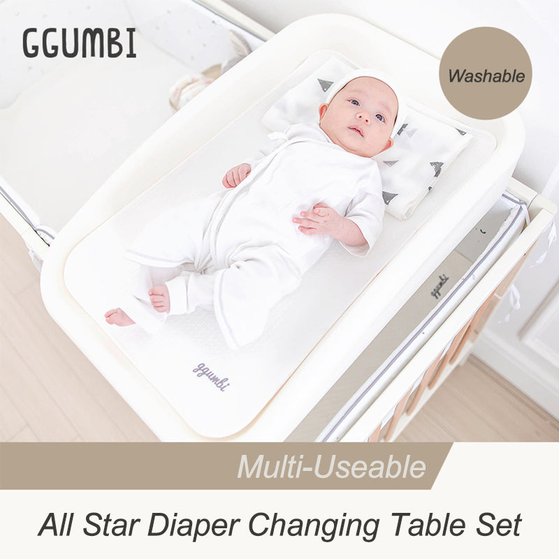 GGUMBI All Star Wood Baby Crib Full Set ( Baby Crib + Mattress + Cushion Guard 3P + Water Proof Pad + Diaper Changing Table Set )