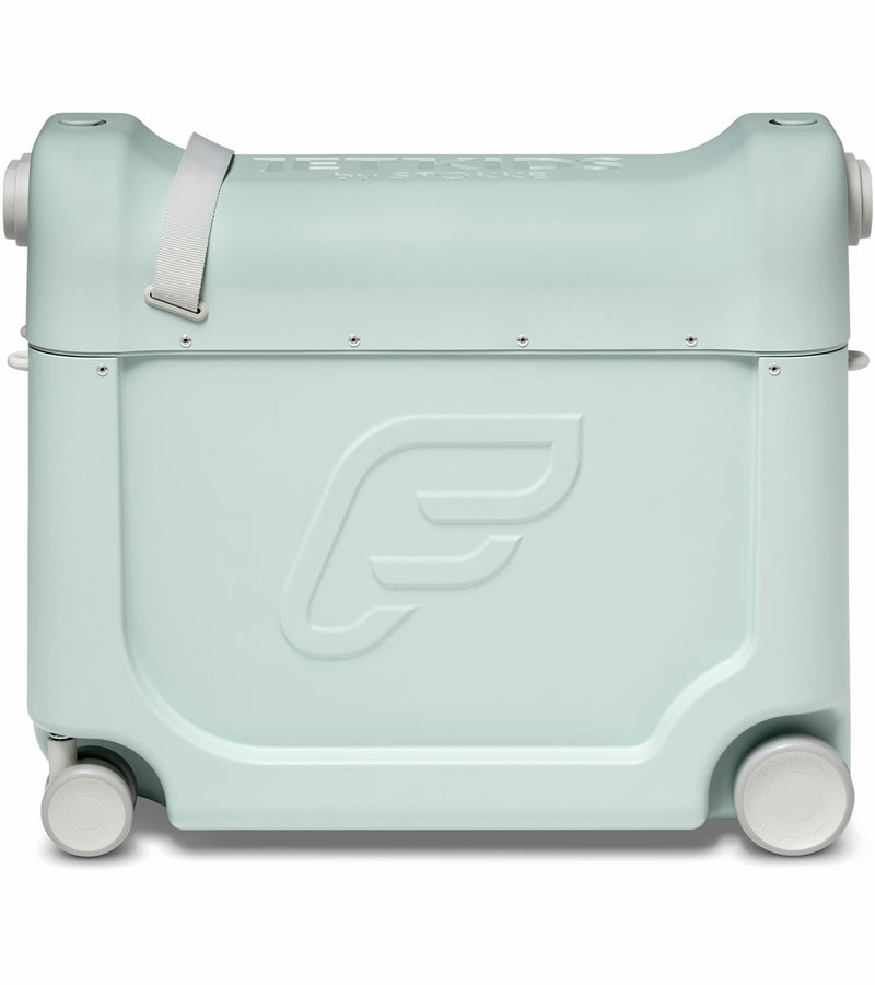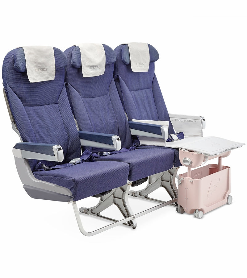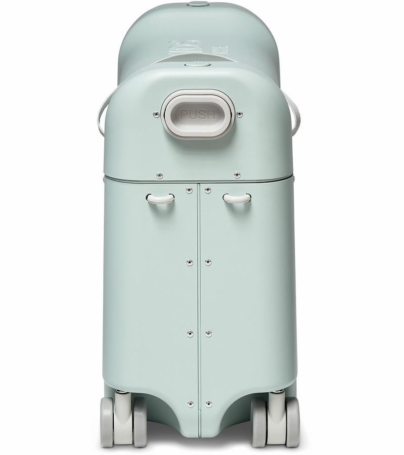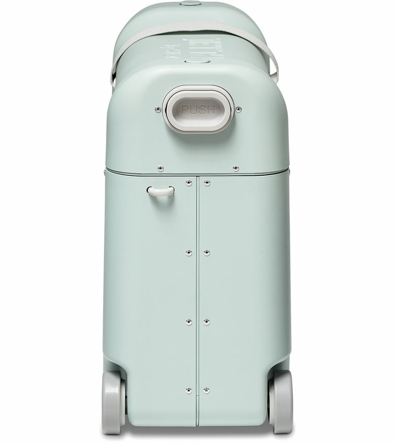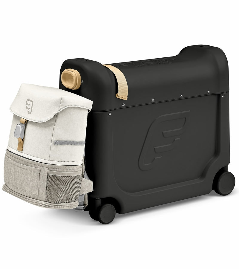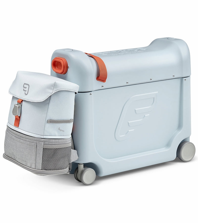 - Aviation inspired details, including mini aluminium seat buckle for opening and closing the lid, a JetKids Crew bag tag, and a set of detachable captain stripes