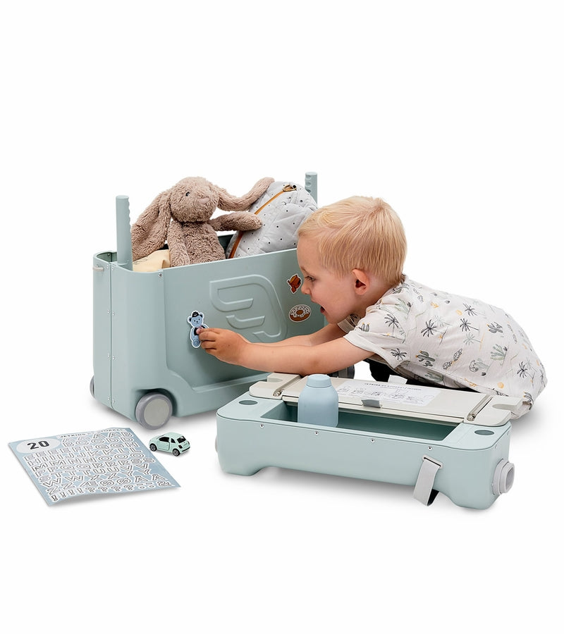 Fun and functional with ample storage, BedBox™ holds all your child’s must-haves. Once packed, let your little one ride it (or pull it) through the airport, train or ferry terminal for stress-free transport. Once the seat belt sign is off, BedBox™ transforms from a suitcase to a bed in 5 simple steps.