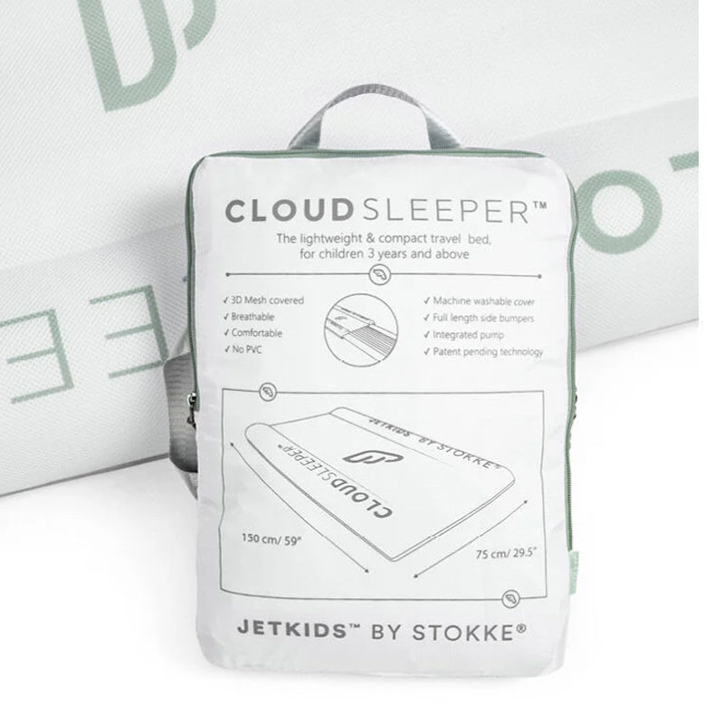 The kids' travel bed for home and away. The CloudSleeper™ is the all-in-one inflatable travel bed for toddlers and kids three years and above. It's a travel bed made easy that's small enough to fit inside your backpack or hand luggage. Lightweight and all-inclusive, it has no loose parts.