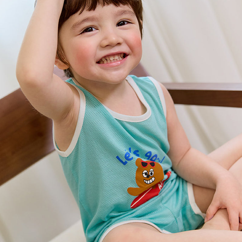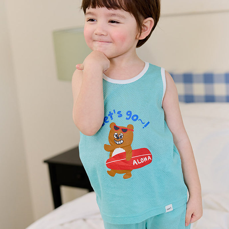 Kids Summer Seeveless Shirt Cotton Cool Mesh Pajamas Set - Joy Bear