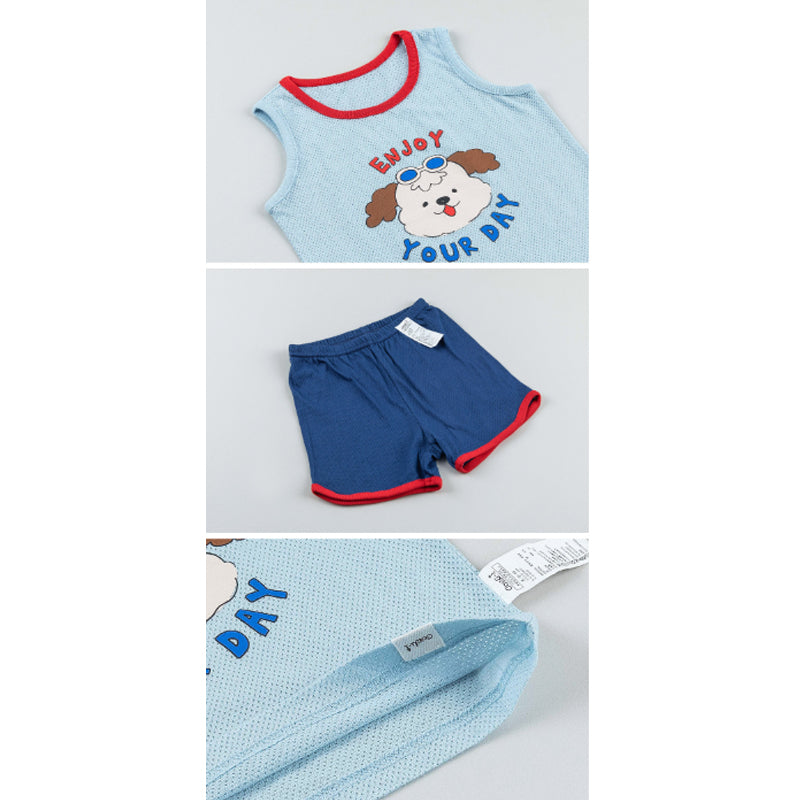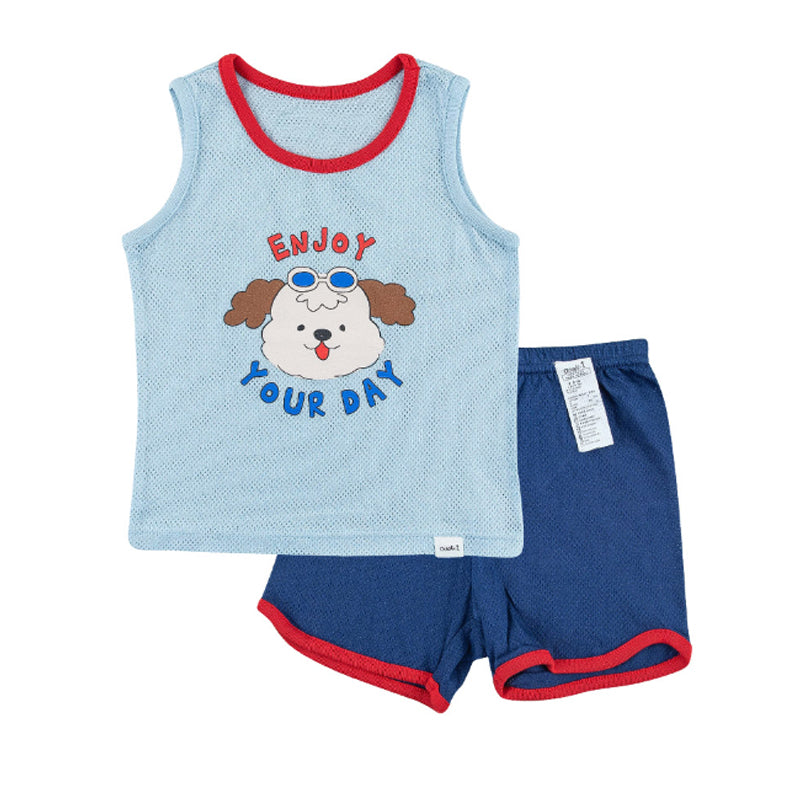 Kids Summer Seeveless Shirt Cotton Cool Mesh Pajamas Set - Marine Puppy