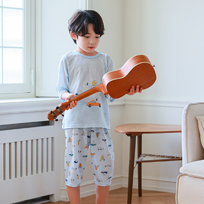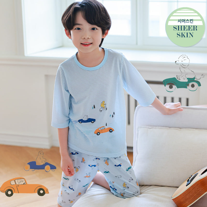 Kids Summer Short Shirt Cotton Cool Mesh Pajamas Set - Car Racing