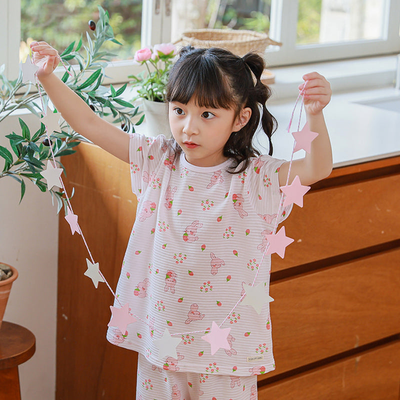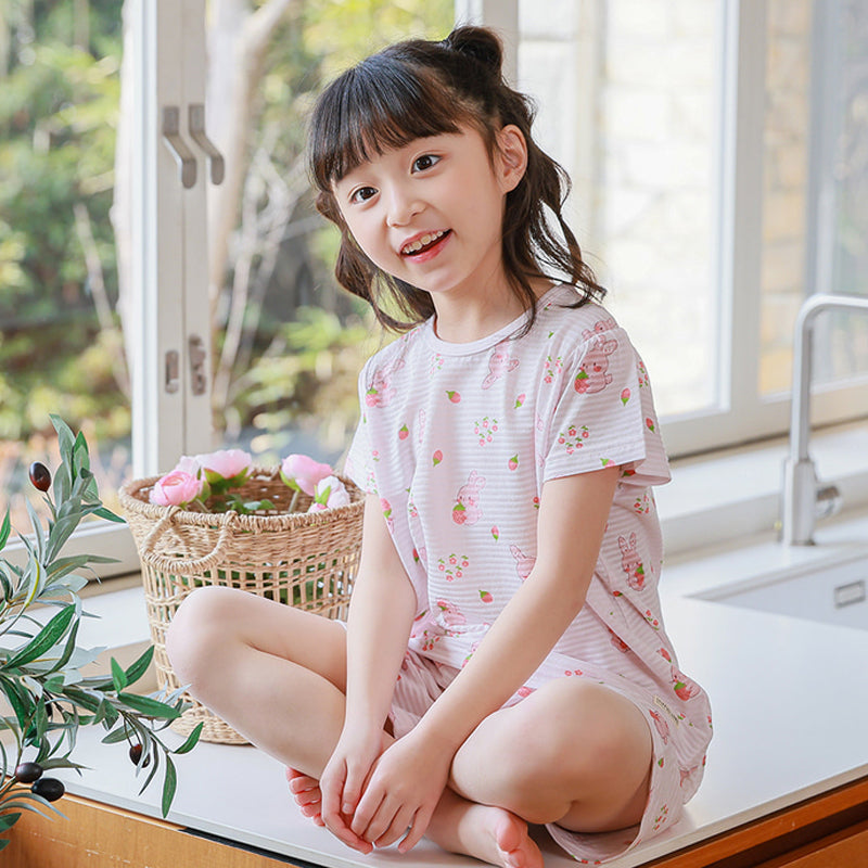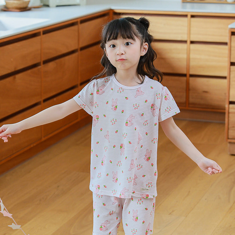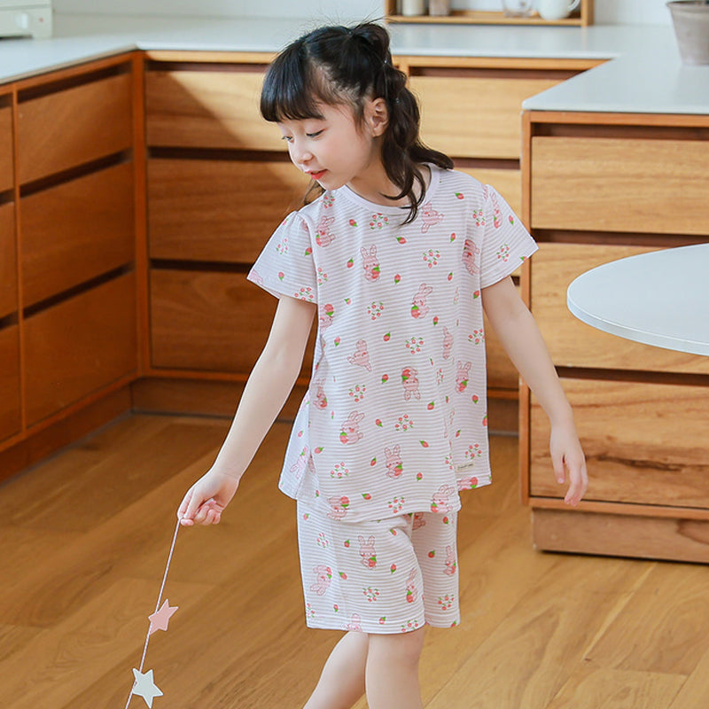 Kids Summer Short Shirt Cotton Cool Mesh Pajamas Set - Lana Rabbit