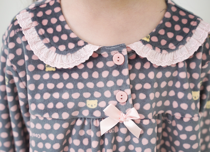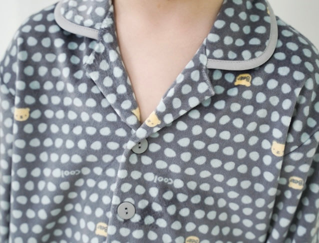 Korean Kids Fleece Pajamas Set-Bear Dot