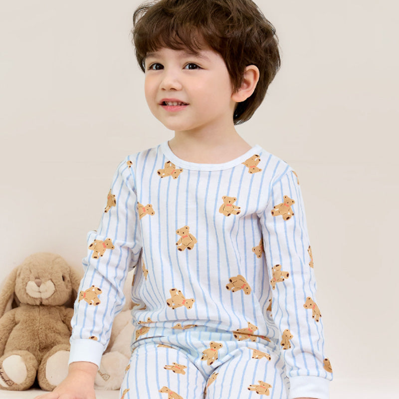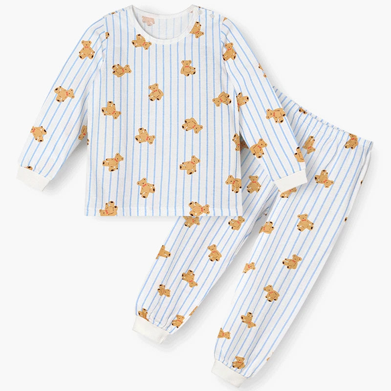 Korean Kids Single Slub Pajamas Set-Little Bear