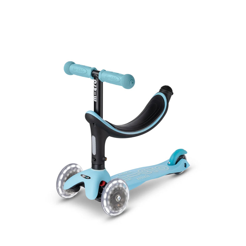 - The Micro Mini2Grow LED Scooter has four configurations to help keep your child smiling and active, from age 1 to age 6.