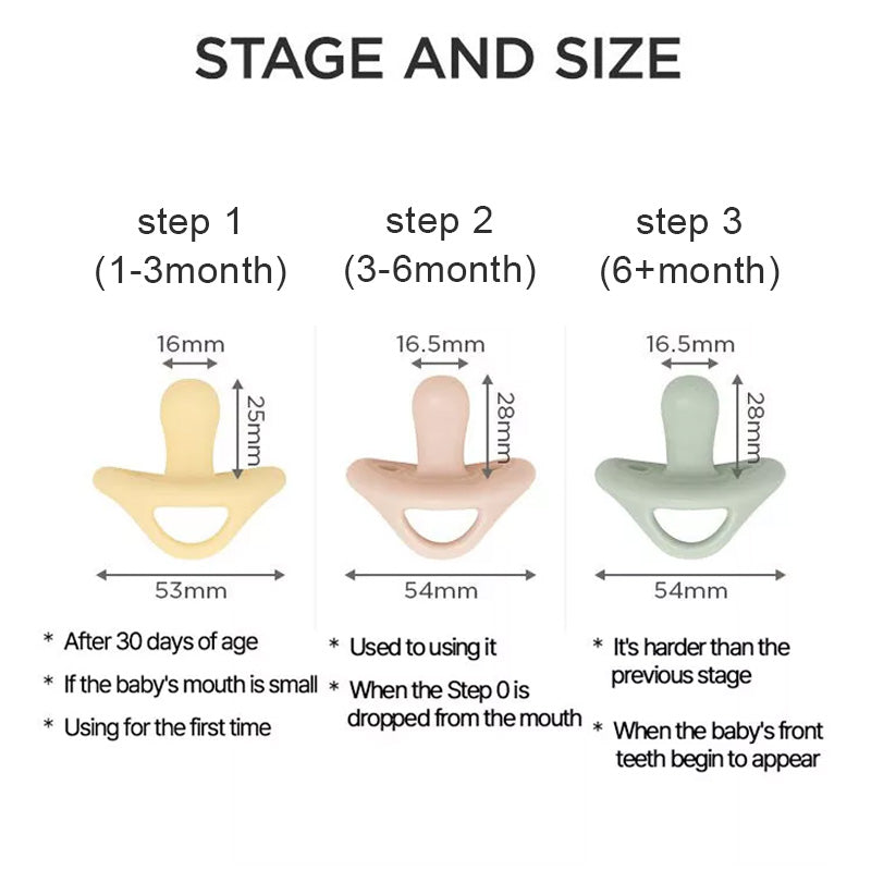 Moyuum All-Silicone Macaron Pacifier with Case is a pastel baby pacifier that is loved by mommy and baby. Made of 100% full platinum silicone material that stimulates the softness of the skin. Safe and easy for baby to latch on. Featuring a flat nipple design that is ergonomically angled at a 6-degree angle to perfectly fit the shape of the upper jaw. Extremely soft and gentle against the baby's delicate gums. Provides great ventilation for comfortable breathing with its two air holes and open structure. Comes with a handy travel storage case that keeps the pacifier clean while on-the-go.