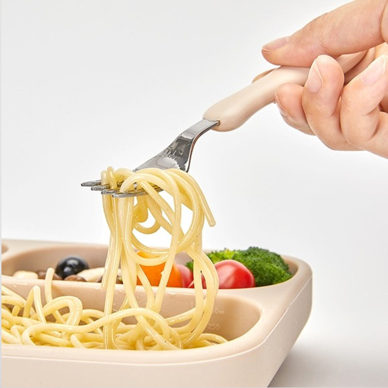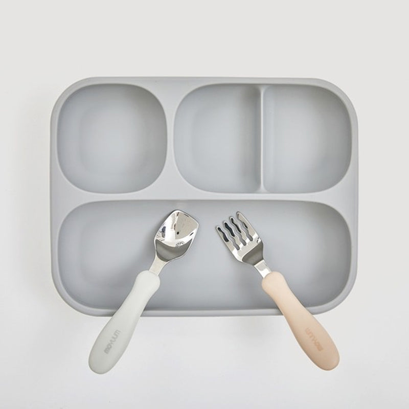 Level up your toddler's mealtime game with Moyuum ergonomically designed spoon and fork set that fit perfectly to their hands and mouth.