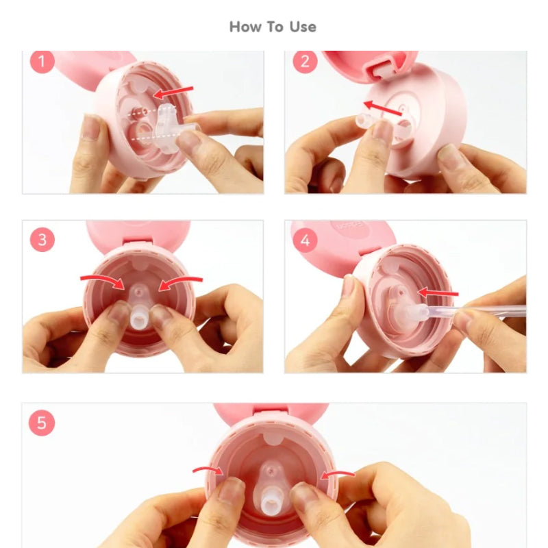 Keep your children rehydrated with this lightweight Tritan straw bottle! The adorable colorful animal design encourages your child to drink water. Comes with a shoulder strap that your child can wear to school.Spill prevention straw: The tip of the straw is cross-cut design so that the beverage does not leak well when tilted.