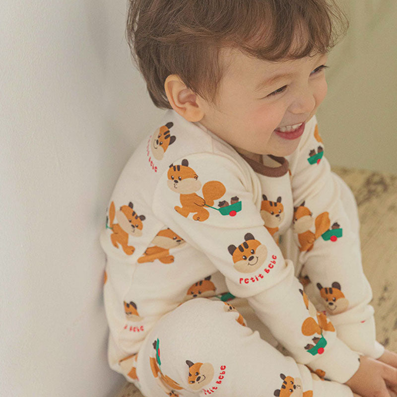 Spandex Brushed Fabric Pajamas Set-Petit Squirrel