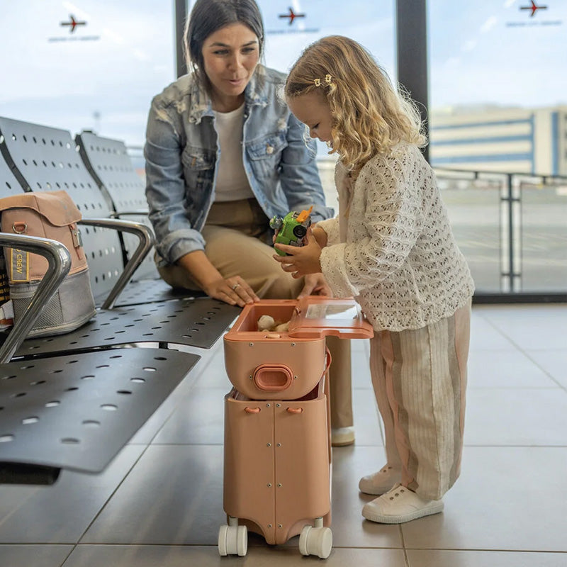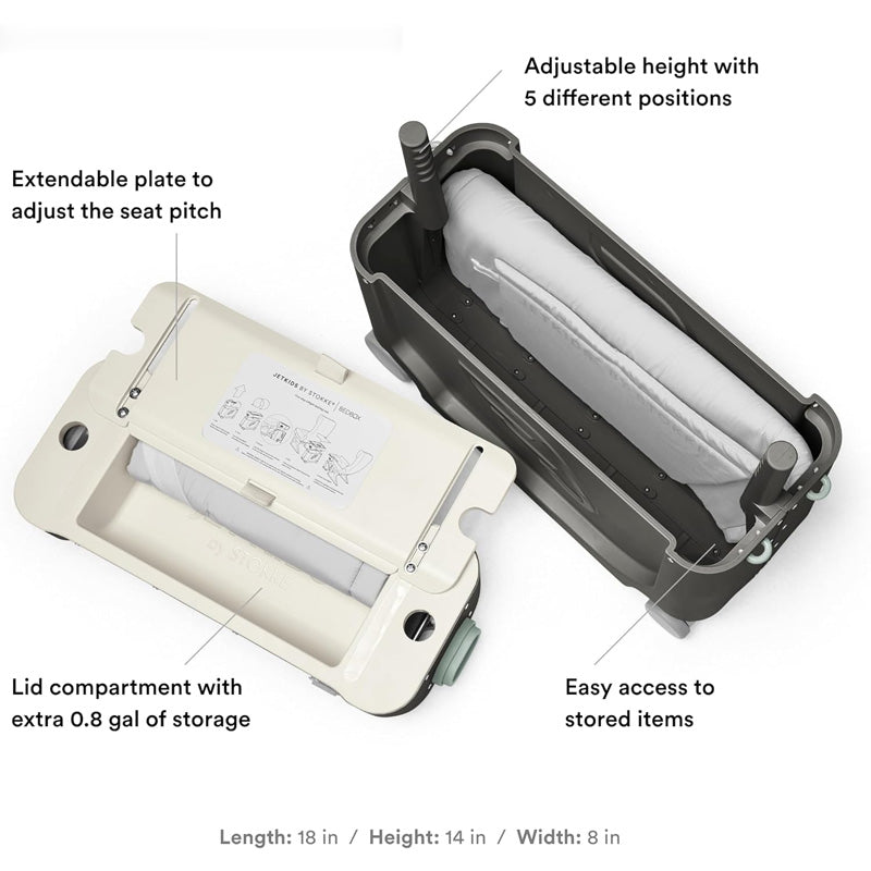 Prepare your little adventurer for journeys far and wide with Stokke® Jetkids™ BedBox™. Designed for children aged 2-7, the airline approved BedBox™ is unique with both a sleep-on and ride-on function. It offers your little one a comfortable space to rest or nap, whether on a short trip or a long-haul flight, while keeping their essentials close by in its spacious storage. Your child will love the freedom of decorating their BedBox™ with stickers and having fun riding or pulling it through the airport. This ride-on suitcase turns every moment of travel into an exciting adventure for both of you.