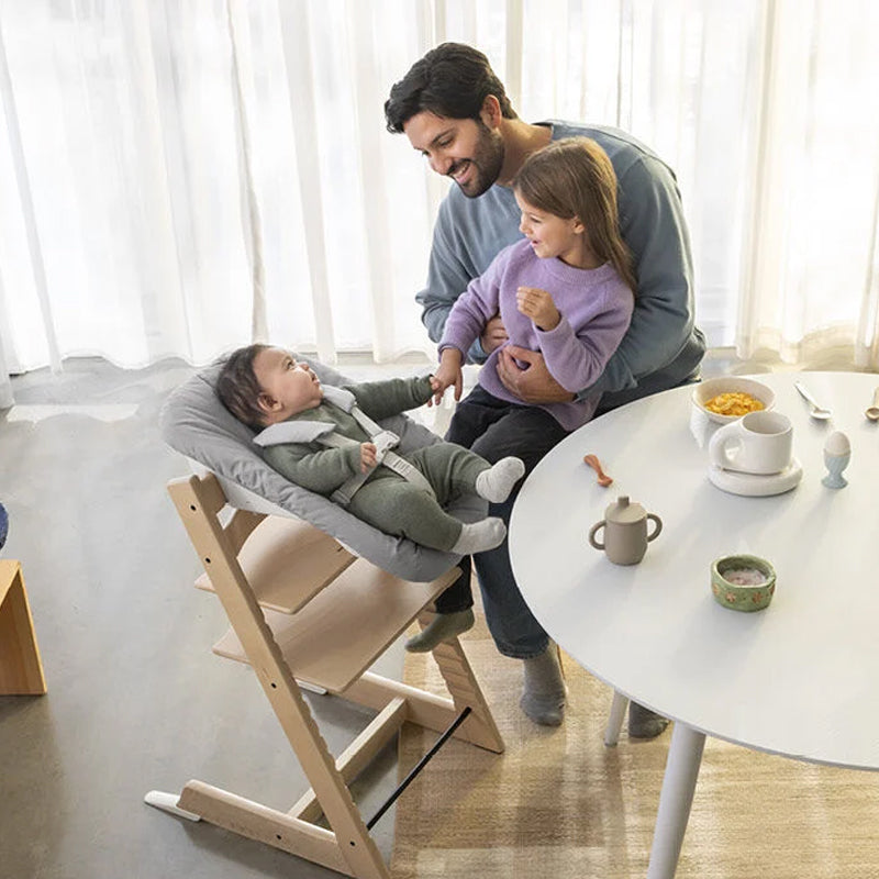 The Tripp Trapp® Chair and Tripp Trapp® Newborn Set bundle is a great way to get all you need to bring your little one to the table from day one. The natural place for your newborn, the Newborn Set is designed to give your baby the interaction they love from birth. Cozy, comfortable and ergonomic, it lifts your infant up to table height. This enables eye contact and is a great opportunity to spend quality time together with the whole family. As your baby grows, continue to use your Tripp Trapp® Chair as a high chair and seat with other accessories to give your growing child a seat at the table – from toddler through teen and even adult years.