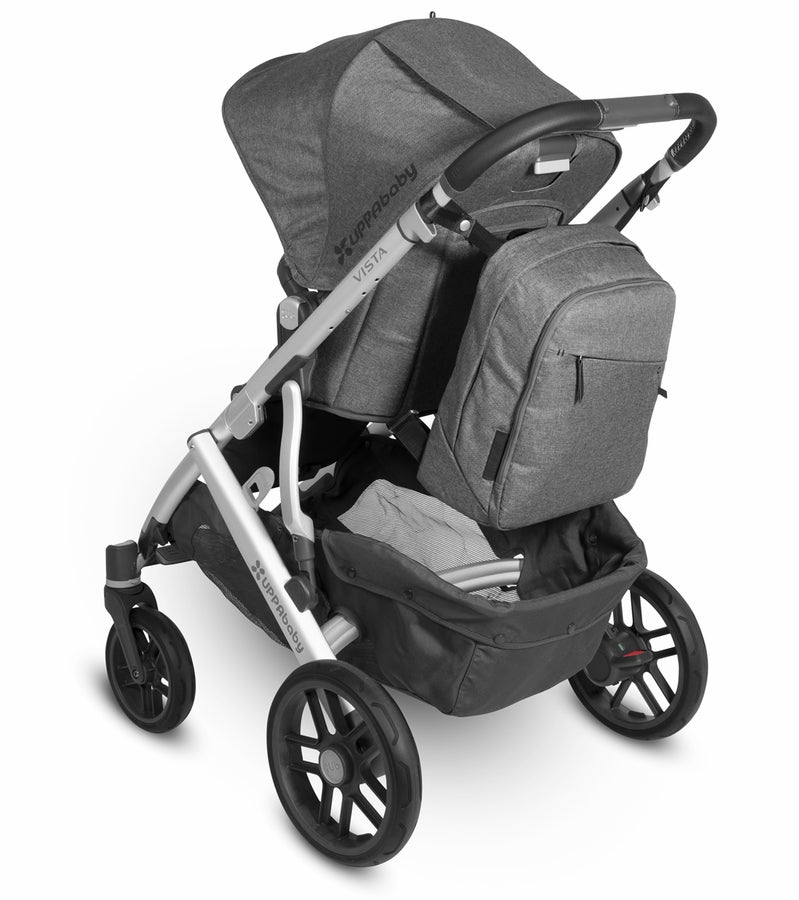 On your back or on the stroller, store all your on-the-go needs in UPPAbaby's chic Changing Backpack. Its premium fabrics and leather detailing coordinate beautifully to your UPPAbaby stroller, while adjustable straps and multiple storage compartments help you gear up and head out in style.
